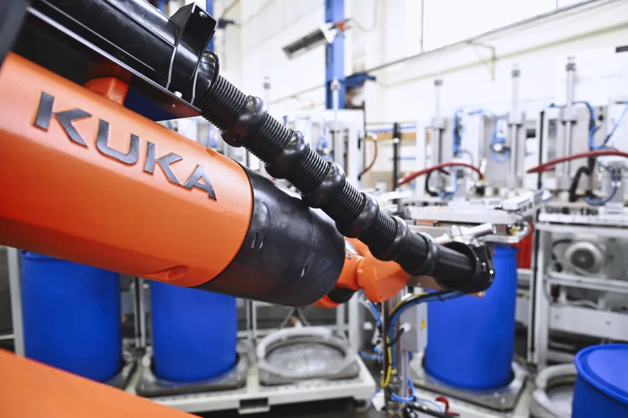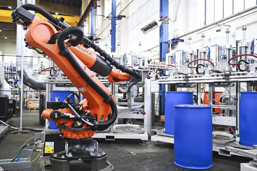 Bekum bietet umfassende Automatisierungslösungen für die Produktion komplexer Behälter. Vom präzisen Handling durch 6-Achs-Roboter über die automatische Gewichtsanpassung bis hin zur Integration von Bauteilen und Funktionselementen – Bekum-Technologie garantiert konstante Qualität und einen sicheren Prozessablauf.